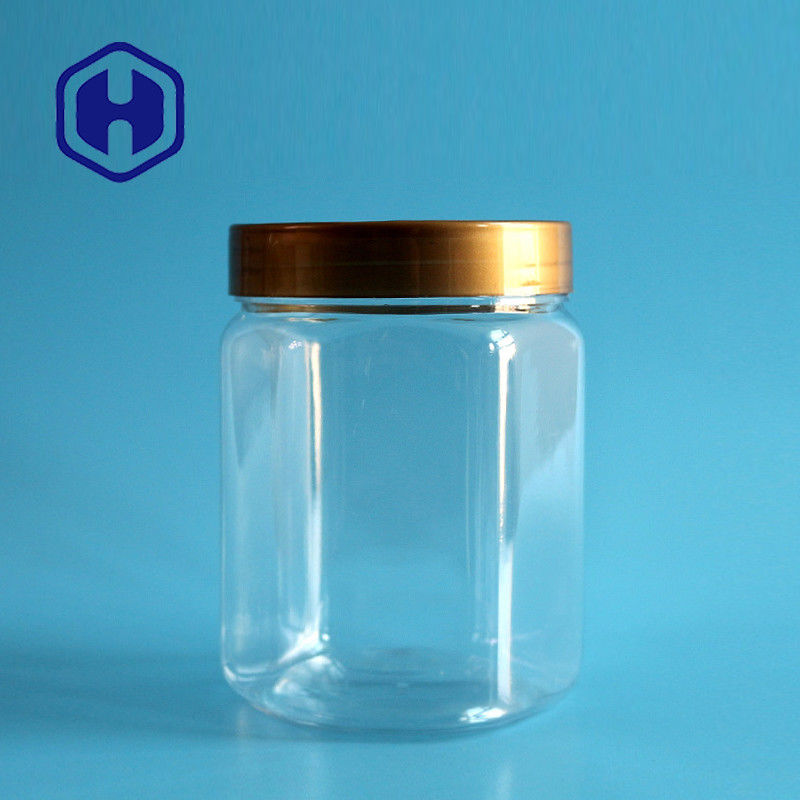भोजन के लिए 660 मिलीलीटर पागल पैकेजिंग पीईटी हेक्सागोन पारदर्शी प्लास्टिक जार निर्माता