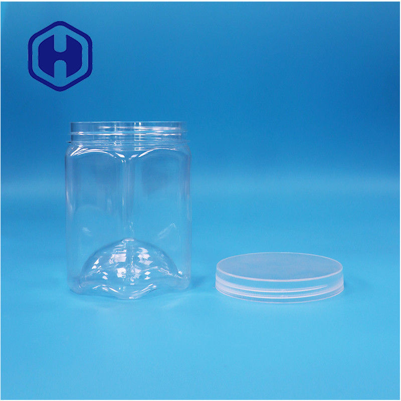 (3) हेक्सागोनल प्लास्टिक कैंडी जार 100% लीक-प्रूफ और हवा-प्रूफ पेंच ढक्कन है, मूंगफली के मक्खन के लिए उपयुक्त है