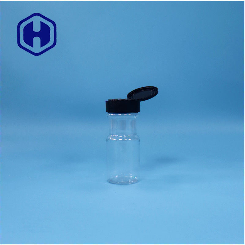 पारदर्शी प्लास्टिक मसाला नमक काली मिर्च पाउडर तुलसी पीईटी जार फ्लिप टॉप कैप