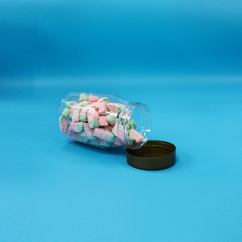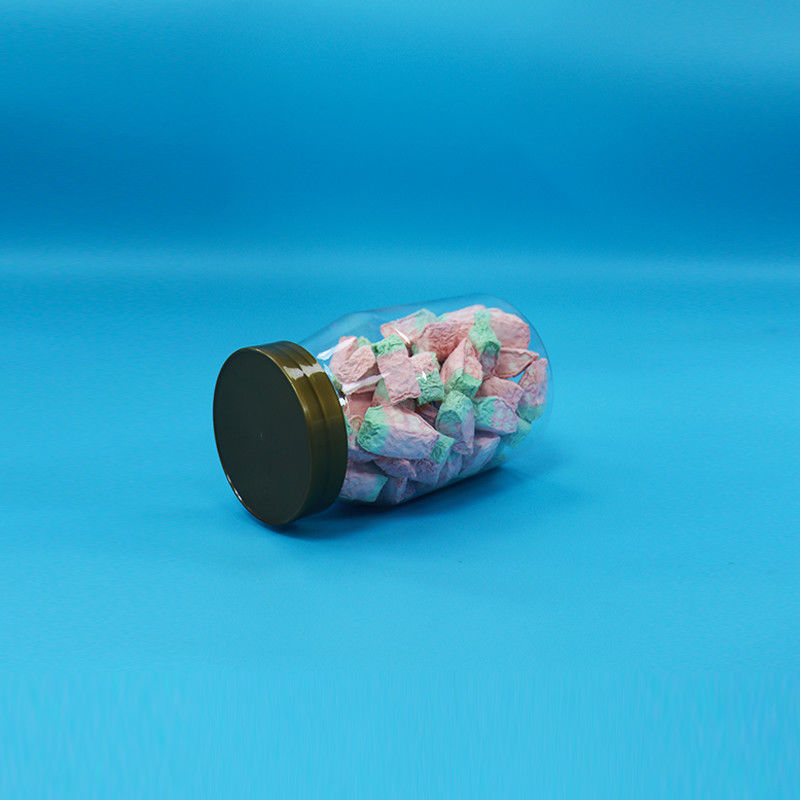 गोल चौड़े मुंह लोड बिस्किट कैंडी खाद्य पारदर्शी पीईटी प्लास्टिक जार पेंच टोपी