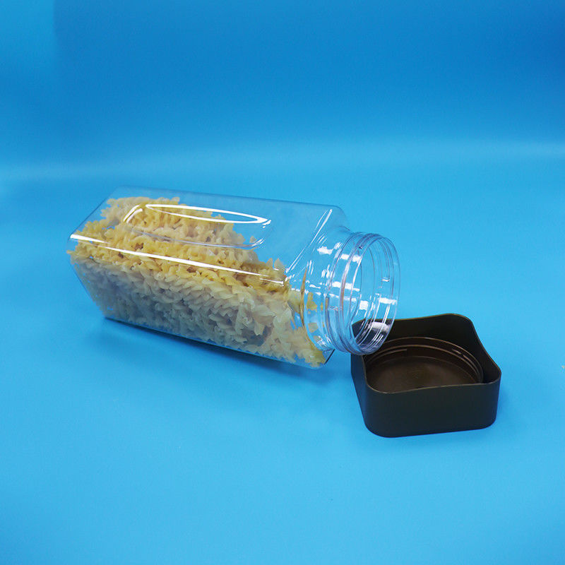 (3) धातु के ढक्कन के साथ पीईटी पारदर्शी चौड़ा मुंह आयताकार प्लास्टिक कैंडी जार 100% लीक-प्रूफ और वायुरोधी है