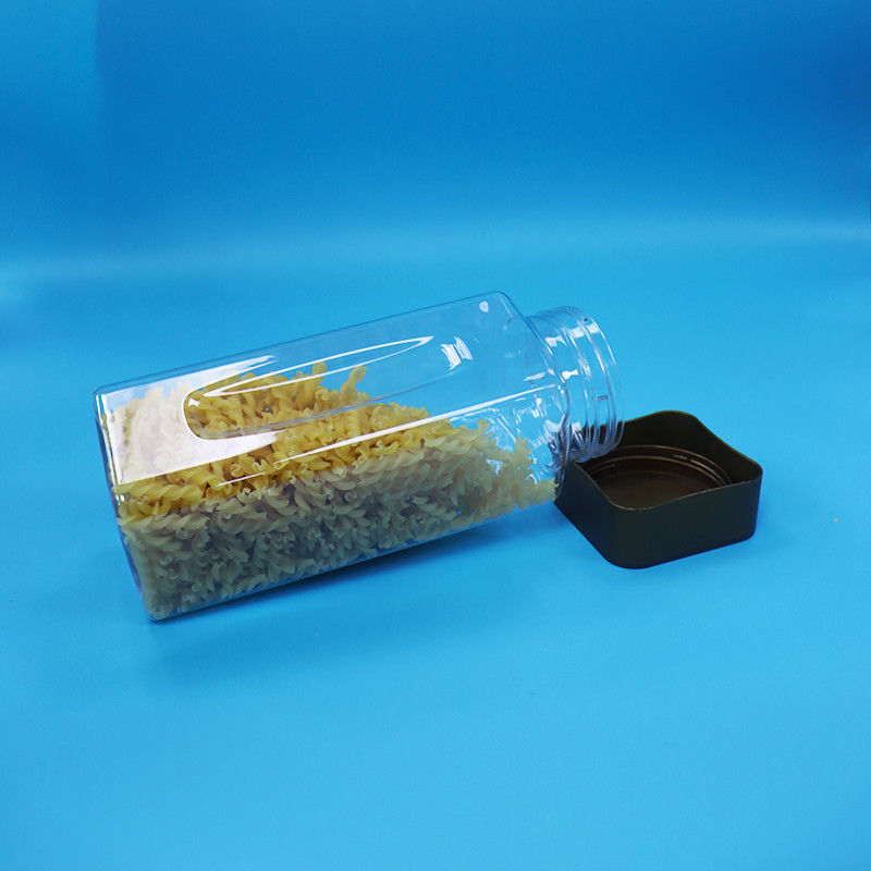 1. पीईटी स्पष्ट चौड़े मुंह आयताकार प्लास्टिक कैंडी जार धातु टोपी के साथ--दोहरी सील विकल्पों के साथ