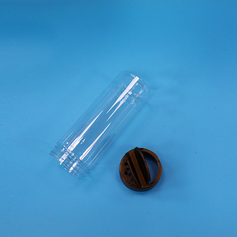 प्लास्टिक पीईटी गोल चौड़ा मुंह पारदर्शी मसाला जार सिफ्टर टोपी चिली मिर्च पाउडर