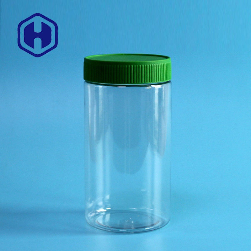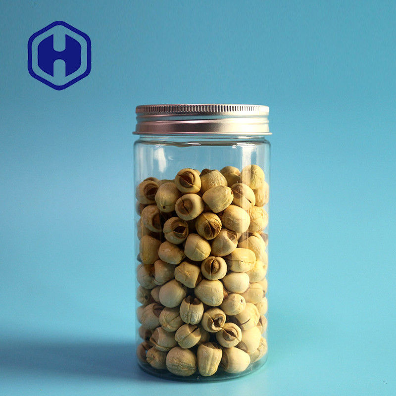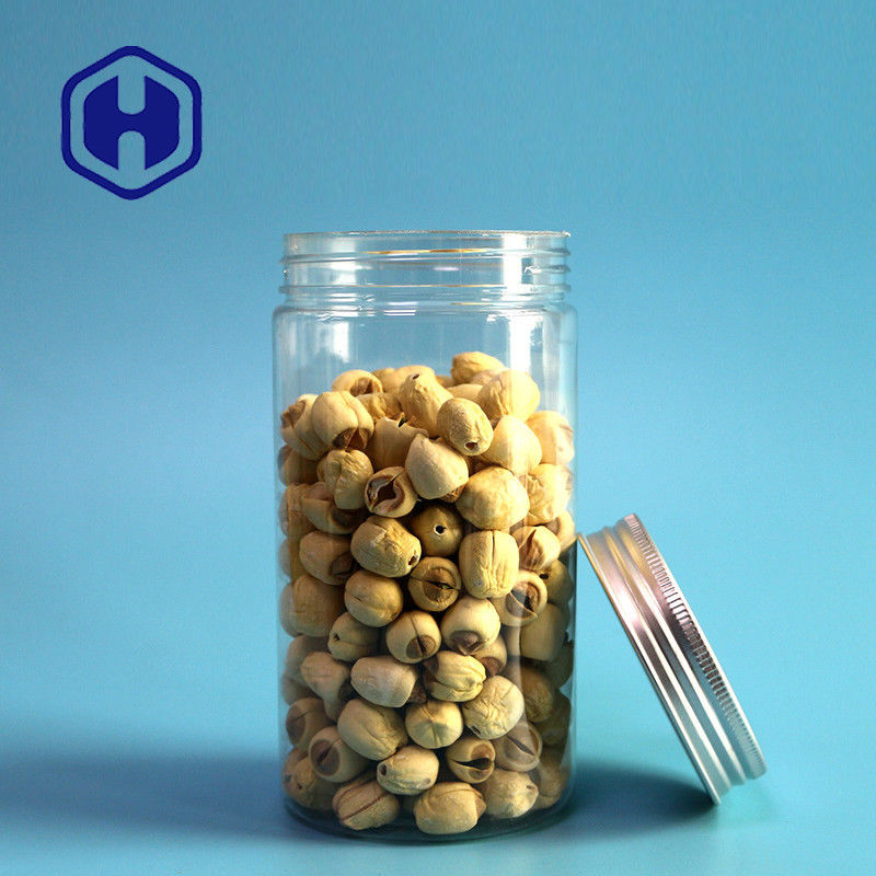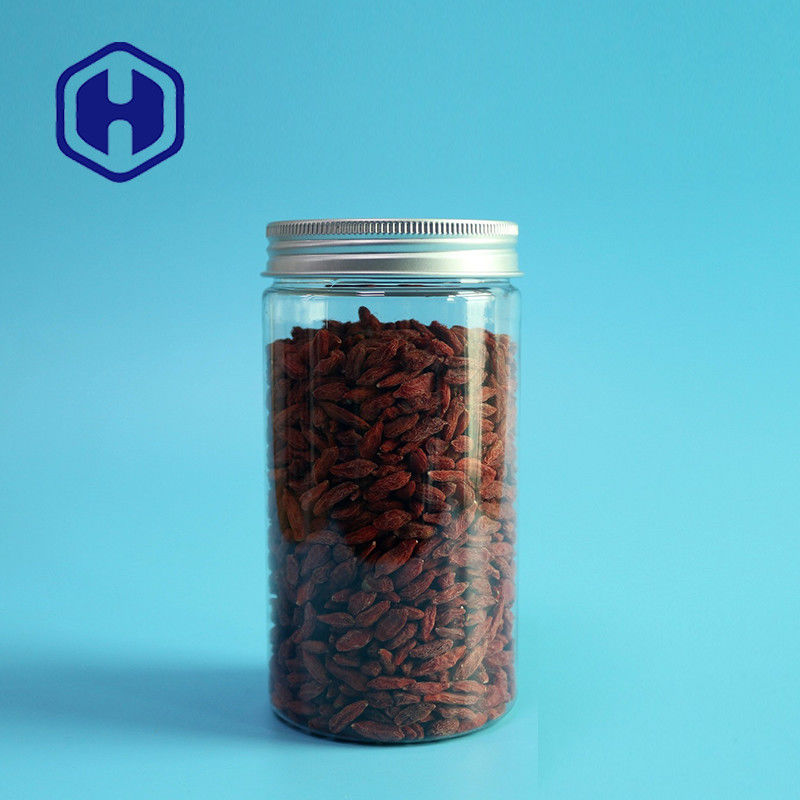 एल्यूमिनियम कवर के साथ 490 मिलीलीटर गोल सीधे 70 मिमी स्नैक्स पारदर्शी पीईटी प्लास्टिक जार