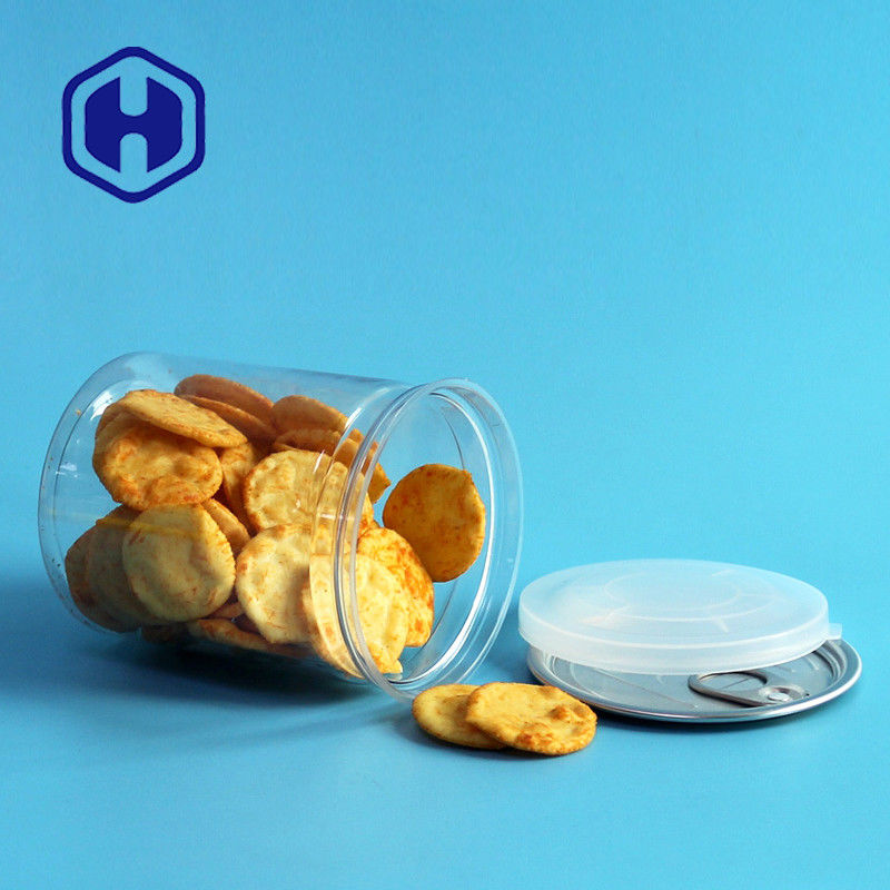 गोल पारदर्शी काजू बिस्कुट डिब्बाबंद खाद्य ईओई प्लास्टिक पीईटी एल्यूमीनियम ढक्कन के साथ कर सकते हैं