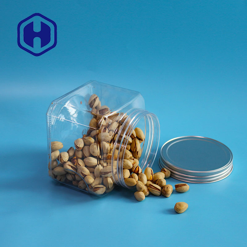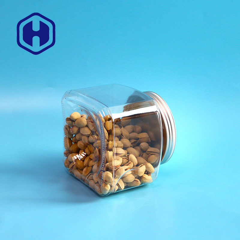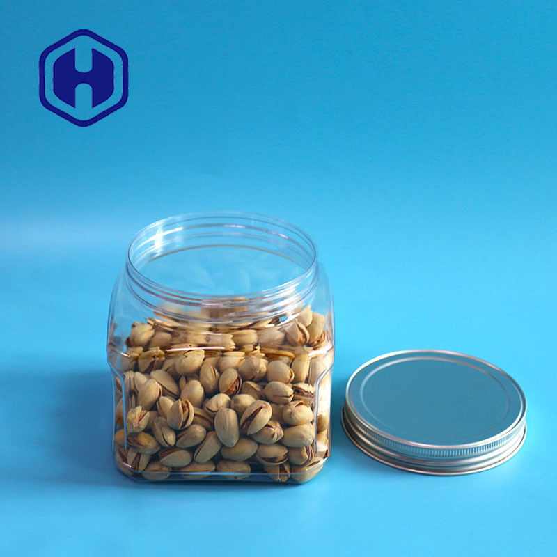 एल्यूमिनियम ढक्कन के साथ बीपीए फ्री स्टोरेज 1000 मिलीलीटर शॉर्ट ग्रिप प्लास्टिक पीईटी फूड स्क्वायर जार
