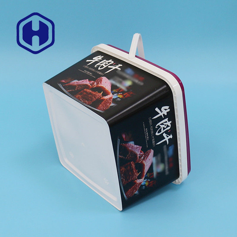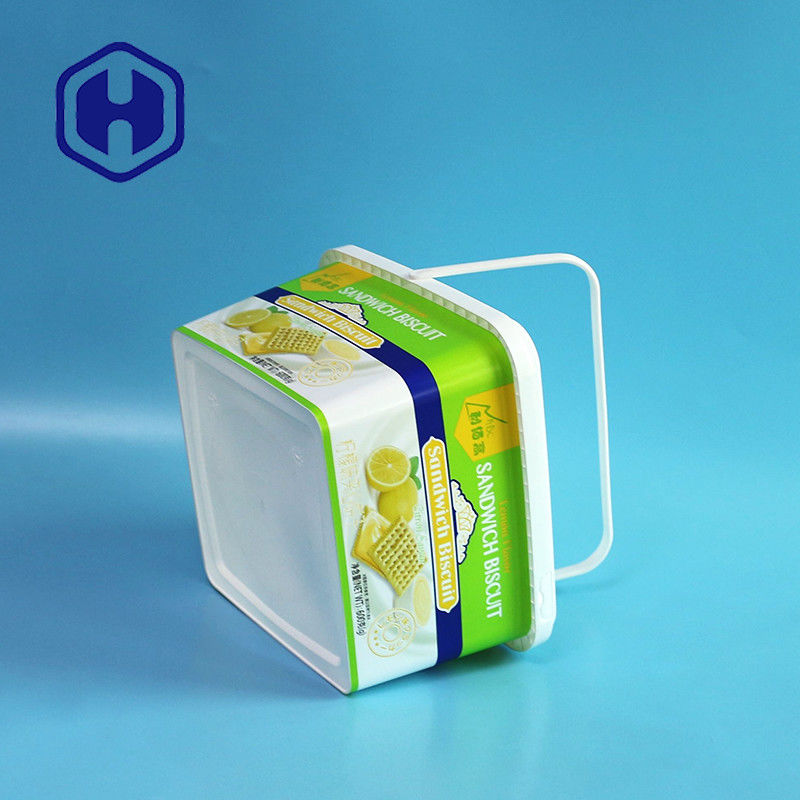 इको फ्रेंडली डिस्पोजेबल कस्टम टिकाऊ स्क्वायर 2L प्लास्टिक क्रैकर बिस्किट आईएमएल कंटेनर पैकेजिंग बॉक्स