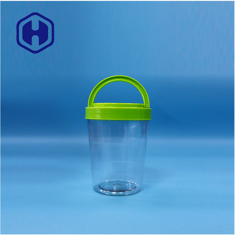 बेस्ट सेलिंग बड़े गोल हवा से अछूता पारदर्शी हैंडल ढक्कन पीईटी प्लास्टिक खाद्य कैंडी जार