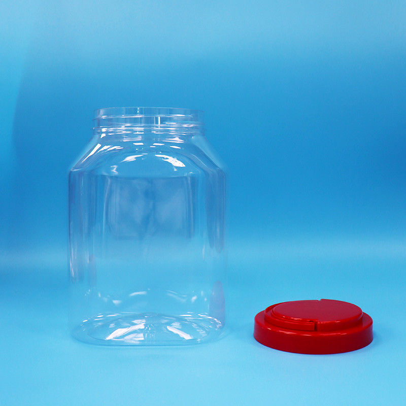 बड़े पारदर्शी सील पीईटी प्लास्टिक खाद्य कुकी नूडल्स कैंडी जार पेंच हैंडल टोपी