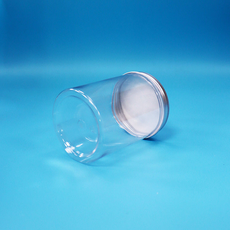 कैंडी कुकीज़ बेबी फ़ूड पारदर्शी सील करने योग्य पीईटी प्लास्टिक गोल जार एल्यूमीनियम ढक्कन