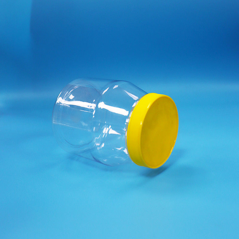 पारदर्शी वायुरोधी व्यापक मुंह कुकीज़ पीईटी प्लास्टिक मीठा चीनी जार पीला पेंच ढक्कन