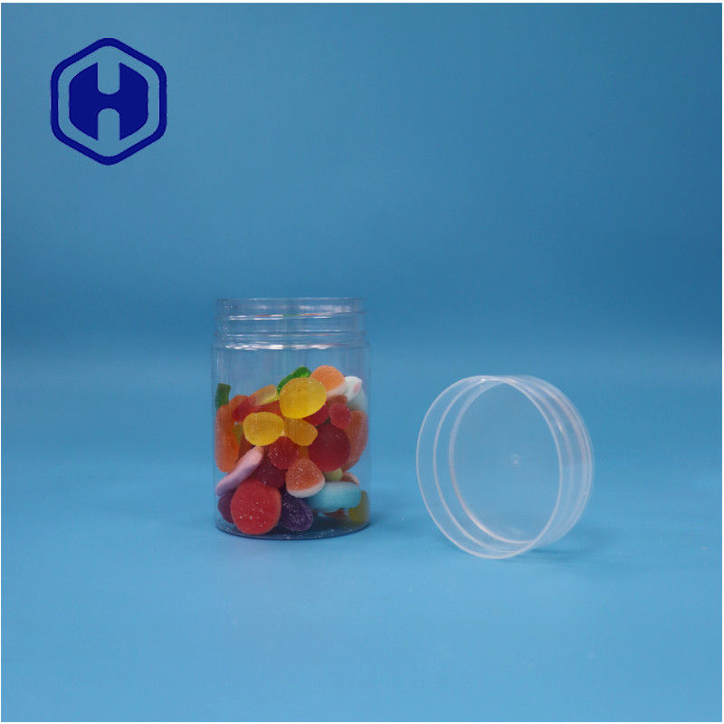 गोल पारदर्शी प्लास्टिक पीईटी मीठा कैंडी कुकीज नट्स मिर्च खाद्य ग्रेड जार
