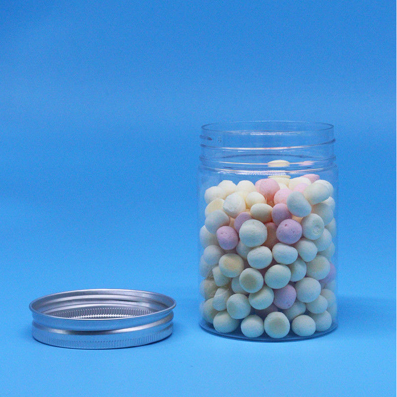 खाली पीईटी खाद्य ग्रेड सिलेंडर गोल खाद्य कैंडी पारदर्शी जार पेंच फ्लैट ढक्कन
