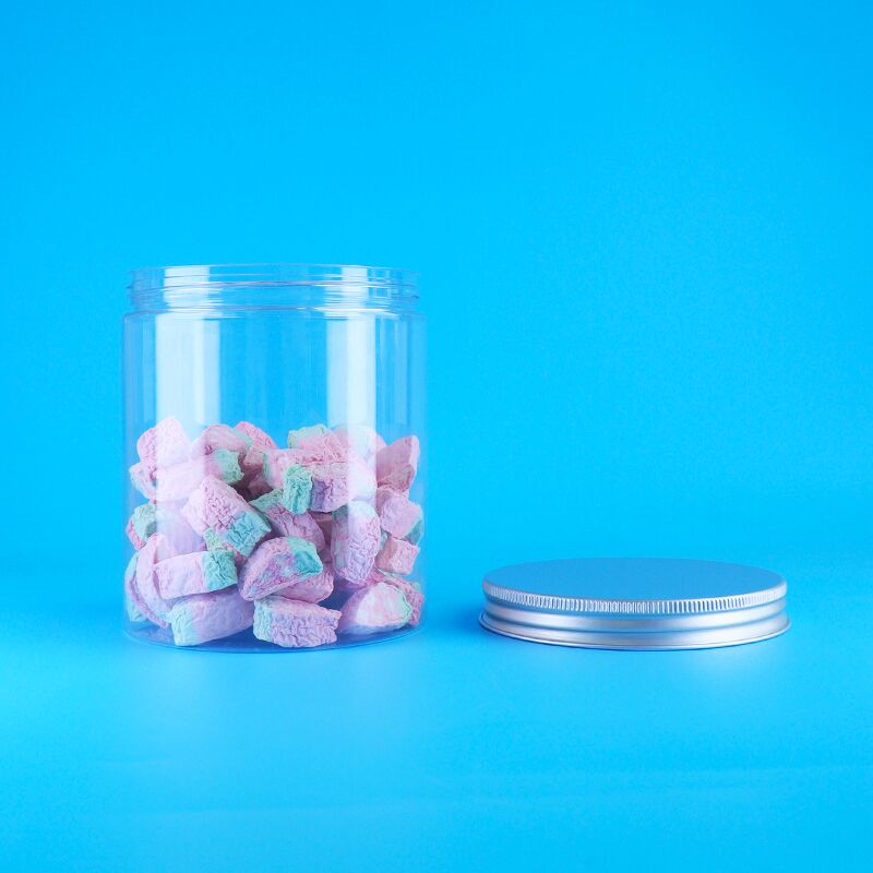साफ़ पीईटी प्लास्टिक गोल जार पैकेजिंग नूगा मैकाडामिया नट झींगा चिप्स स्क्रू ढक्कन